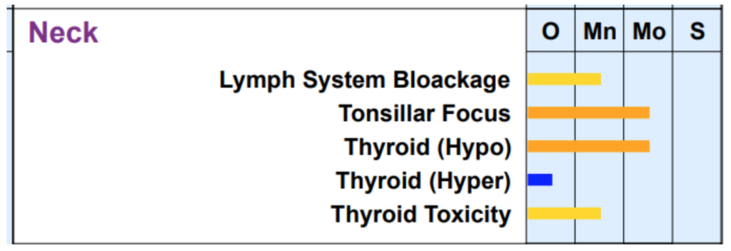 Even though this advanced version of thermography can determine the function of your brain, entire digestive system, heart, lungs, lymphatic system, breast for women, and prostate for men, the neck region data will give you a lot of insight into thyroid function. See below.